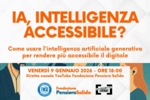 L’evento, organizzato congiuntamente da Fondazione Pensiero Solido, IWA Italy e Accessibility Days, ha riunito in diretta online alcuni dei principali protagonisti italiani del mondo dell’accessibilità digitale e dell’intelligenza artificiale, offrendo una panoramica molto ampia, pragmatica e a tratti visionaria sul rapporto tra IA e inclusione.