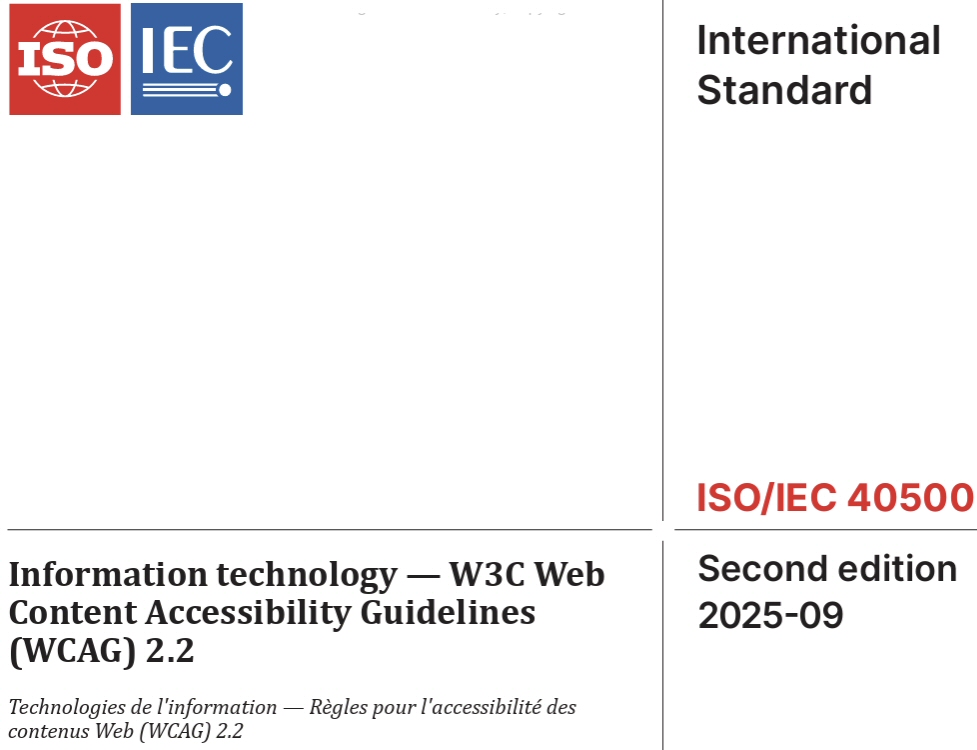 Nel mese di settembre 2025, sono state pubblicate come “ISO/IEC 40500:2025 – Information technology — W3C Web Content Accessibility Guidelines (WCAG) 2.2 Published (Edition 2, 2025).